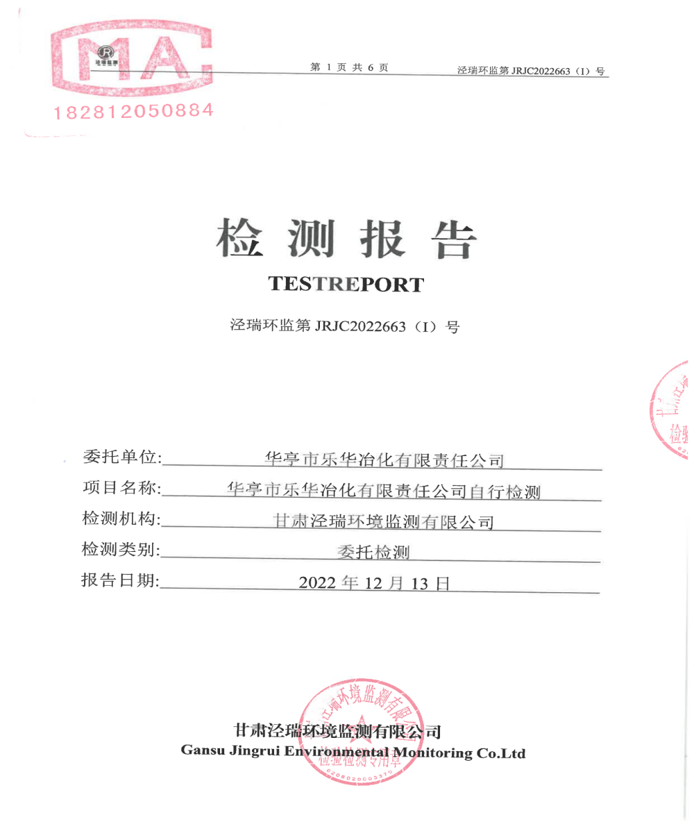 華亭市樂華冶化有限責(zé)任公司自行檢測報告